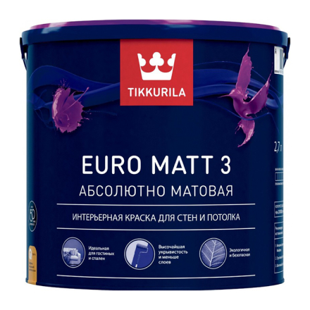 TIKKURILA EURO MATT 3 краска интерьерная, для стен и потолков, абсолютно матовая, база C (0,9л)